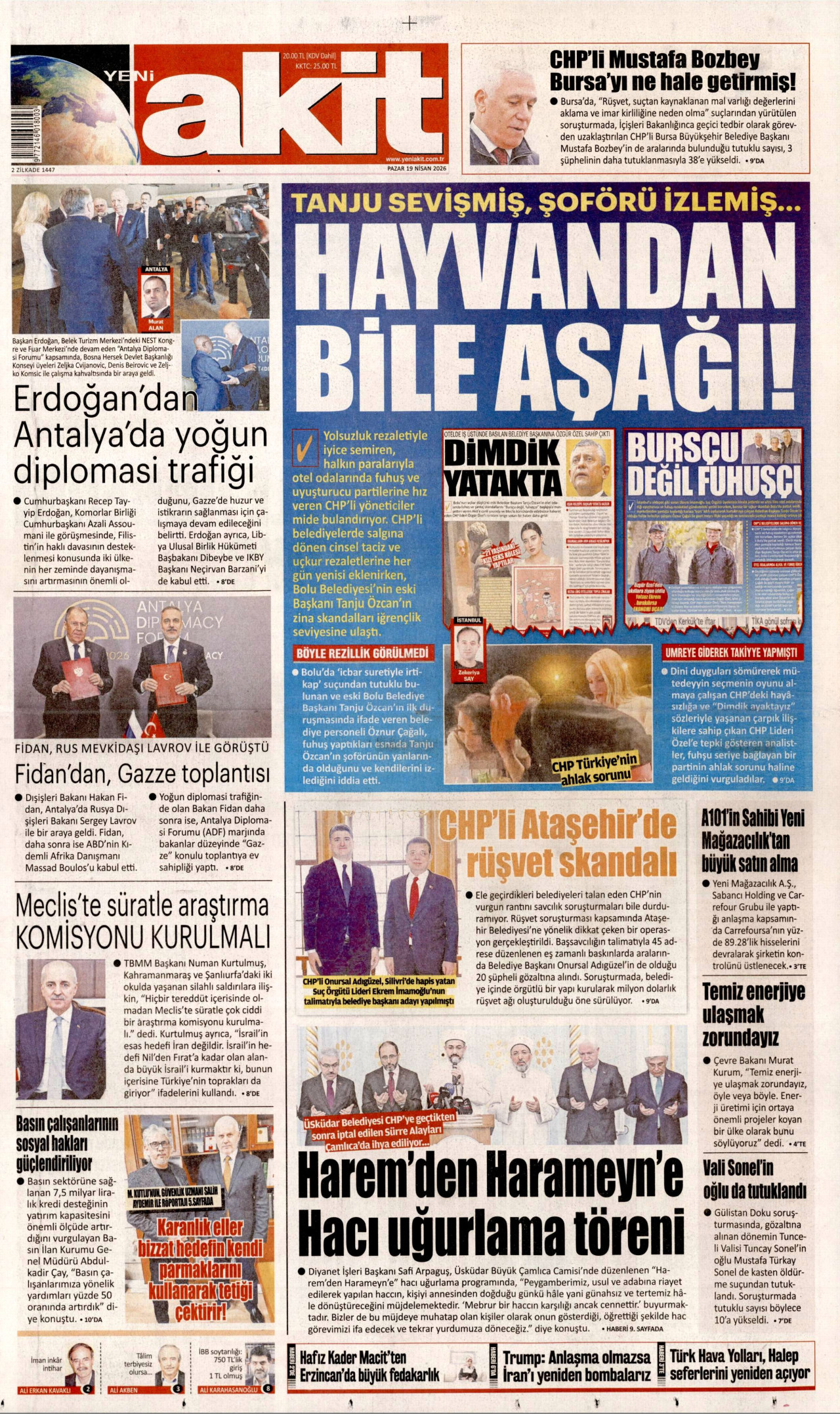 YENİ AKİT Gazetesi 18 Nisan 2026, Cumartesi Günü Manşeti